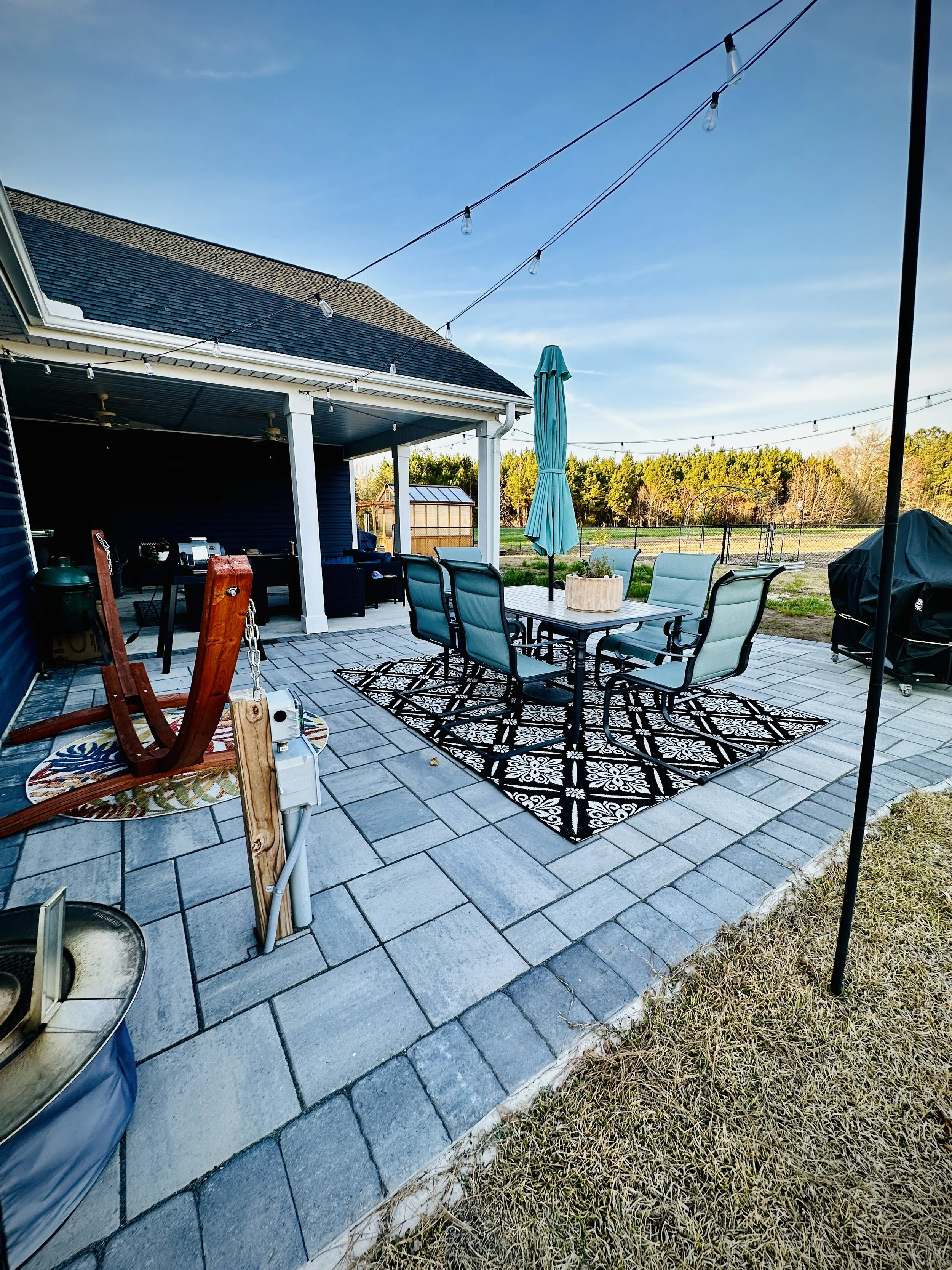 Completed in SC. You don’t need to have an entire backyard renovation to work with us. Can never go wrong with a grey and charcoal patio along with a matching firepit!