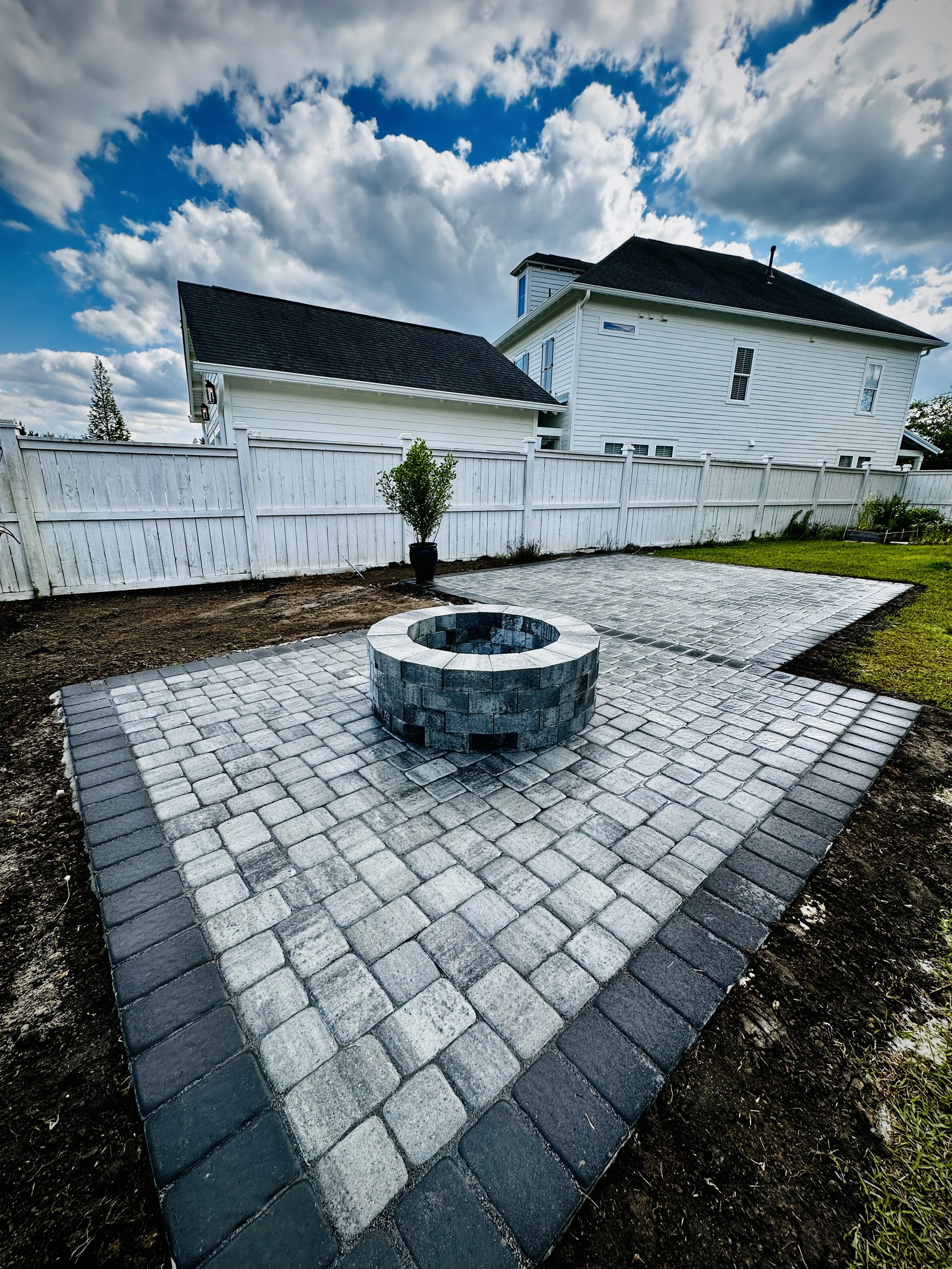 Completed in SC. We created this design from the ground up! This project had a patio, fire-pit, plants and stepping stones. Now they can enjoy their one of a kind living space!